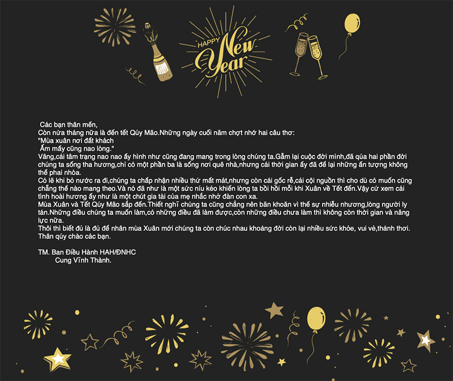 Ban Điêu hành HAH/ĐNHC chúc tết :