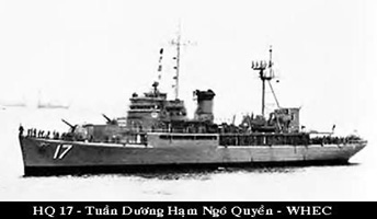 HQ2 Trần Quang Khải trước là USCGC Bering Strait, WHEC 382. Đóng bởi công ty Lake Washington SY, Houghton WA. Hạ thủy ngày 15 tháng 1 năm 1944. Chuyển giao cho Hải Quân VNCH ngày 1 tháng 1 năm 1971. HQ3 Trần Nhật Duật trước là USCGC Yakutat, WHEC 380. Đóng bởi công ty Associated Shipbuilders, Seattle WA. Hạ thủy ngày 2 tháng 7 năm 1942. Chuyển giao cho Hải Quân VNCH ngày 1 tháng 1 năm 1971. HQ5 Trần Bình Trọng trước là USCGC Castle Rock, WHEC 383. Đóng bởi công ty Lake Washington SY, Houghton WA. Hạ thủy ngày 11 tháng 5 năm 1944. Chuyển giao cho Hải Quân VNCH ngày 21 tháng 12 năm 1971. HQ6 Trần Quốc Toản trước là USCGC Cook Inlet, WHEC 384. Đóng bởi công ty Lake Washington SY, Houghton WA. Hạ thủy ngày 13 tháng 5 năm 1944. Chuyển giao cho Hải Quân VNCH ngày 21 tháng 12 năm 1971. HQ15 Phạm Ngủ Lão trước là USCGC Absecon, WHEC 374. Đóng bởi công ty Lake Washington SY, Houghton WA. Hạ thủy ngày 8 tháng 3 năm 1942. Chuyển giao cho Hải Quân VNCH ngày 15 tháng 5 năm 1972. HQ16 Lý Thường Kiệt trước là USCGC Chincoteague, WHEC 375. Đóng bởi công ty Lake Washington SY, Houghton WA. Hạ thủy ngày 15 tháng 4 năm 1942. Chuyển giao cho Hải Quân VNCH ngày 21 tháng 6 năm 1972. HQ17 Ngô Quyền trước là USCGC McCulloch, WHEC 386. Đóng bởi công ty Lake Washington SY, Houghton WA. Hạ thủy ngày 10 tháng 7 năm 1943. Chuyển giao cho Hải Quân VNCH ngày 21 tháng 6 năm 1972. III. HỘ TỐNG HẠM: Tám Hộ Tống Hạm trực thuộc BTL/Hạm Đội trong đó có 3 chiếc là PCE (Patrol Vessel- Escort), 5 chiếc khác là tàu vớt mìn MSF (Mine Sweeper) thuộc Hải Quân Hoa Kỳ. Tài liệu trong website hqvnch.net có ghi HQ02, Hộ Tống Hạm Đống Đa nhưng không có thêm chi tiết nào khác. Những số liệu cần biết: • Trọng tải: tối đa từ 903 (PCE) đến 945 (MSF) tấn. • Kích thước: dài 184 ft, rộng 33.1 ft. • Vận chuyển: hai động cơ diesels, từ 1710 (MSF) đến 2000 (PCE) mã lực mỗi động cơ. • Vận tốc: trung bình từ 14 (MSF) – 15 (PCE) hải lý/ giờ. • Vũ khí trang bị: 1 đại bác 76 mm, đại liên 50, 2 khẩu 40 mm đơn, 4 khẩu 20mm đôi, 1 giàn depth charges. Thủy thủ đoàn: khoảng 90 người.