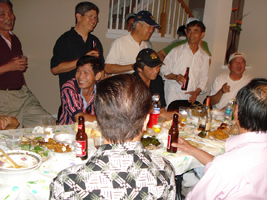 Tôi nhớ mãi ba ngày đại hội Hổ Cáp hai tề tựu về đây Thành phố nóng, Orlando tháng bảy Để cùng nhau họp mặt vui vầy Ba chín năm, chao ôi! dài nhỉ Thế mà sao vẫn thấy không quên Hình bóng cũ, chàng trai Nam Việt Xếp bút nghiên theo mộng hải hồ Bởi ngày xưa tôi yêu lính biển Nên trở thành "Hổ Cáp phu nhân" Để hôm nay hiện diện nơi này Cùng anh chị tỏ bày tâm sự! Đ ại hội đã trôi qua hơn một tháng rồi thế mà sao lòng tôi vẫn còn vương vấn, đối với tôi, đại hội kỳ này là vui nhất, đáng nhớ nhất trong những lần đại hội trước mà tôi có mặt. Phải chăng lần này tôi vừa được gặp mặt con trai, con dâu và cháu nội, thât là "nhất cử lưỡng tiện". Cả ba ngày họp mặt, thứ năm, thứ sáu, thứ bảy tôi đều có chuyện đáng nhớ để kể cho các anh chị nghe Trưa thứ năm, vợ chồng tôi, Hổ Cáp 2 Lê Văn Tài cùng anh chị Phạm Nghỉa Vụ đến Orlando, được anh Đoàn Viết Sơn ra đón tại phi trường và đưa về nhà thằng con trai của chúng tôi để nghỉ ngơi vài tiếng đồng hồ thì cùng nhau ra bãi biển để họp mặt picnic, nhìn thấy các anh chị trong Ban Tổ Chức đang lăn xăn nấu nướng để phục vụ cho bạn bè mà cảm kích, nhìn các "đấng trượng phu" trong BTC kẻ nấu tôm, người nướng thịt mặt mày đỏ âu vì nóng, nóng của khí hậu, nóng của lò lửa lòng tôi vừa cảm thấy tội nghiệp vừa cảm thấy hả hê! Tội nghiệp là vì tôi thường quan niệm rằng việc nấu nướng bếp núc là việc của đàn bà, cho nên mỗi lần nhìn thấy các "đấng mày râu" làm bạn với ba ông táo hay rửa chén chùi soong thì lòng tôi không đành, hả hê là để "trả thù" lại cái quan niệm thường ngày của các đấng ông chồng Việt Nam rằng vợ phải có bổn phận phục vụ cho chồng nên các ông cứ ung dung ngồi xem ti-vi để chờ cơm dọn ra bàn. Thế mới biết lòng đàn bà thật vô cùng phức tạp, vô cùng mâu thuẫn như "giận thì giận mà thương thì thương" đó. Chuyện đáng nhớ của tôi trong ngày này là tối hôm đó vì anh Sơn có chút hơi men nên để tôi cầm tay lái, tôi lái xe cũng vững lắm và thường lái xe thay ông xã Tài mỗi khi đi xuyên bang, thế mà lần này tôi vừa lái xe vừa thầm cầu nguyện bởi ngoài trời thì tối đen như mực, hai bên đường không có cột đèn điện, trời lại mưa xối xả, trận mưa quá lớn ví như có người đổ từng phuy nước ào ào xuống liên hồi, hai cánh quạt nước được mở tối đa mà cũng không gạt kịp, đường thì lạ mới đi lần đầu, đèn pha cũng chỉ nhìn thấy vài mét, còn phía trước thì tối om nên không biết nó thẳng hay cong. Có năm bảy chiếc xe tạt vào lề đường đậu lại vì không dám lái, họ chờ cho mưa vơi bớt, vì vậy tôi vừa cố mở mắt thật lớn mà lái vừa thầm cầu nguyện được "về đến chốn" bình an. Thật chưa bao giờ tôi vừa lái xe vừa hồi hộp như lần này! ![]() Trở lại những ngày đại hội, qua ngày thứ sáu, trong đêm Tao Ngộ, gia đình Đệ Nhị Hổ Cáp gặp nhau tại một nhà hàng mà tôi quá vô tình không nhớ được tên, đang ngồi trong bàn ăn thì anh Sơn từ bàn nào đó đến bên tôi kề tai nói nhỏ: - Có người ái mộ chị muốn gặp chị. Tôi tự nghĩ tôi có làm được cái gì to tác đâu mà có người ái mộ nhưng gì lịch sự nên tôi cũng đứng lên đi theo anh Sơn, đi được hơn mười bước thì thấy một người đàn ông đang đứng đợi, anh Sơn giới thiệu: - Người này muốn gặp chị. Rồi anh bỏ đi, dưới ánh đèn tranh tối tranh sáng, cộng thêm đang buồn ngủ nên tôi không trông rõ mặt người đối diện. Bắt tay chào nhau, người kia nói: - Em là em của anh Đệ, đọc bài chị viết em thích lắm, vợ em cũng đi dạy. Tôi ngái ngủ trả lời: - Cám ơn. Rồi ai về bàn nấy, tiệc tàn, anh Sơn đưa vợ chồng tôi về nhà, trên đường đi, anh Sơn mới tiết lộ thêm tin tức: - Em trai của thằng Đệ ở VN qua chơi theo diện du lịch, cũng gần về lại rồi. À, thì ra đây là vị khách từ phương xa đến, thế mà mình không hỏi thăm gì cả, thật là tệ quá, thiếu sót quá đi; tôi tự dặn lòng thế nào tối mai cũng phải tìm gặp để hỏi vài điều ở quê nhà, nhất là về ngành giáo dục. Trong đêm Tao Ngộ, điều làm tôi vui và cảm động nhất là được gặp anh chị Lê Văn Lai và ba cháu gái từ Na-Uy qua. Đây là lần đầu tiên tôi gặp anh chị Lai nhưng sao tôi cảm thấy rất thân thiết như đã lui tới với nhau từ bao năm nay. Đúng rồi, bởi vì ông xã Tài thường nhắc đến anh Lai: "Bố có thằng bạn ở bên Na-Uy tên Lai, lúc trước bố với nó thân với nhau lắm, nó giỏi lắm, qua Na-Uy nó học ra đại học, làm việc ở một hảng sản xuất dầu xăng ....". Ông cha ta có câu "xa mặt thì cách lòng", nhưng tình bạn giữa anh Lai và ông xã Tài thì không như vậy, dù sống xa nhau hằng mấy chục năm mà vẫn nhớ về nhau, vẩn nhắc đến tên nhau, thật là đáng quí. Đêm đó, anh Lai rời bàn của anh đến bàn của chúng tôi, anh xin phép ngồi giữa, vợ chồng tôi ngồi hai bên, anh Lai kể: - Lúc còn tro