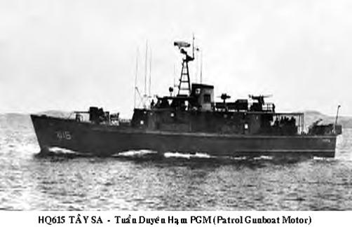 T rong thập niên 60, Hoa Kỳ viện trợ và chuyển giao cho Hải Quân Việt Nam 20 Patrol Gun Motor Boat (PGM). Gồm có các tuần duyên hạm HQ-600 Phú Dự (PGM 64), HQ 601 Tiên Mới (PGM 65), HQ-602 Minh Hoa (PGM 66), HQ-603 Kiến Vàng (PGM 67), HQ-604 Kèo Ngựa (PGM-68), HQ-605 Kim Quy (HQ-59), HQ-606 Mây Rút (PGM- 60), HQ-607 Tiên Du (PGM-61), HQ-608 Hoa Lư (PGM-62), HQ-609 Tổ Yến (PGM- 63), HQ-610 Định Hải (PGM-69), HQ-611 Trường Sa (PGM-70), HQ-612 Thái Bình (PGM-72), HQ-613 Thị Tứ (PGM-73), HQ- 614 Song Tử (PGM-74), HQ-615 Tây Sa (PGM-80), HQ-616 Hoàng Sa (PGM-82), HQ-617 Phú Quốc (PGM-81), HQ-618 Hòn Trọc (PGM-83), và HQ-619 Thổ Châu (PGM- 91). Tên Việt Nam của những tuần duyên hạm này đều đã được lấy ra từ tên của những hòn đảo nằm trong lãnh hải của Việt Nam. Các chiến hạm này đều được sản xuất từ hãng đóng tàu Marinette Marine Manitovoc ở Tiểu Bang Washington, và có các đặc điểm sau: chiều dài 100 feet 4 inches, chiều ngang 21 feet 1 inch, lòng sâu dưới mặt nước 8 feet 6 inches. Tốc độ có thể đạt được đến 17 knots. Những chiến hạm mang từ số HQ-600 đến HQ-611 được trang bị với hai máy Mercedes, những chiến hạm mang từ số HQ-612 đến HQ-619 được trang bị bằng hai dàn máy với 4 máy Grey 371 mỗi bên. Vũ khí trang bị gồm một đại bác 40 ly kép trước mũi, đại bác 20 ly đôi trên nóc, một bích kích pháo trực xạ 81 ly ở sân sau cùng vũ khí cá nhân. Đặc biệt khẩu 81 ly có thể đặt ở bên tả hạm hay hữu hạm do sự kiến trúc của HQCX. Tuần duyên hạm Tây Sa HQ-615 được bàn giao cho Hải Quân Việt Nam vào tháng 6 năm 1966, trực thuộc Hạm Đội HQVNCH, Hải Đội I Tuần Duyên. ![]() Chiến hạm HQ-615 hoạt động trong cả năm vùng duyên hải, và có khi phải hộ tống các sà lan (chaland) đạn và quân nhu quân dụng tiếp tế cho Nam Vang. Khi tôi tân đáo chiến hạm thì HC2 Đỗ Văn Sử đang làm hạm phó cho HQ Đại Úy Lê Văn Quý, Hạm Trưởng. Sau khi trình diện thì, Hạm trưởng đã chỉ định tôi giữ chức vụ Hạm Phó thay thế cho bạn Sử. Đa số thủy thủ đoàn trực thuộc HQ-615 là những thành phần bất trị nổi tiếng trong hạm đội được đưa về, nên rất khó chỉ huy và điều hành. Vào năm 1973, trong lúc các bạn đồng khóa lên lon trung úy, thì riêng tôi lại bị giam lon vì trải qua một số thời gian nằm ở trong quân lao Gò Vấp! Trung úy Sử lại phải lên nắm quyền Hạm Phó thay cho tôi vì tôi vẫn còn phải mang lon thiếu úy. Trên tàu chúng tôi ngoài Hạm Trưởng, Đại úy Lê Văn Quý (K.14), còn có Trung úy Đỗ Văn Sử (K.20), Thiếu úy Trần Văn Tuấn (K.21), Chuẩn úy Khổng Hữu Thích (K.23), và tôi (K.20). Nhân viên cơ hữu gồm có 5 thượng sĩ và trung sĩ, 25 hạ sĩ và thủy thủ. 1. Năm Căn - Cà Mau: Trong một lần công tác Vùng IV và Vùng V Duyên Hải, chúng tôi phải tuần tiễu, ngăn chận sự xâm nhập của các ghe thuyền Cộng Sản, yểm trợ hải pháo cho các đơn vị bạn từ vùng Hà Tiên, biên giới với Campuchia, cửa Bẩy Hạp, cửa Bồ Đề vào đến Ngã Ba Tam Giang trên sông Bồ Đề. Mỗi lần vào sông Bồ Đề là chúng tôi vào nhiệm sở tác chiến, và rất phải cẩn trọng nhất là ở khúc Ngã Ba Tam Giang với đường uốn cong queo kiểu hình "cổ cò". Như thường lệ, Hạm trưởng Quý đứng phía bên hữu hạm, Hạm phó Sử đứng bên tả hạm, tôi chỉ huy khẩu 20 ly trên sân thượng, Thiếu úy Tuấn chỉ huy cây 40 ly sân trước, Chuẩn úy Thích coi khẩu 81 ly trực xạ ở sân sau. Vào ban đêm trên đường tuần tiễu, đèn trên tàu được che kín không để lọt ánh sáng ra bên ngoài. Bất thần, chiến hạm bị lọt trúng ổ phục kích và bị tấn công với các đại bác 75 ly không giật, thượng liên 12 ly 8, B-40, B-41, và Ak-47. Ngay phút đầu tiên, pháo tháp 40 ly trước mũi của Thiếu úy Tuấn đã bị trúng đạn 75 ly làm sập, xệ xuống một bên, và bất khiển dụng! Thiếu úy Tuấn và 5 nhân viên bị thương nặng. Khẩu 20 ly lập tức phản pháo vào những vị trí nghi ngờ, và khẩu 81 ly rót vào bờ với những trái đạn bắn trực xạ làm cho địch quân im tiếng súng. Chiến hạm tiếp tục vận chuyển di hành. Thiếu úy Tuấn và 5 nhân viên được tải thương vào bên trong tàu. Khoảng mười phút sau, chiến hạm lại bị lọt vào một ổ phục kích khác của địch quân. Lần này, đài chỉ huy bị trúng ngay phát đạn 75 ly đầu tiên. Hạm trưởng Quý và Hạm phó Sử bị hất tung, rơi lọt xuống boong tàu phía dưới. Chiến hạm bị bất khiển dụng trôi lờ đờ! Cây 20 ly và khẩu bích kích pháo 81 ly phản pháo ngay lập tức. Tôi nhìn xuống dưới boong tàu thấy bạn Sử vừa lồm cồm đứng lên thì bị quất ngã gục xuống sàn tàu bởi một viên thượng liên. Tôi phóng vội xuống, vực bạn vào khu phòng ăn sĩ quan. Sử thều thào cố nói với tôi: "Tao bị trúng đạn rồi, không biết có sống được không?" Tôi vội an ủi bạn: "Đừng sợ, tao đã liên lạc cho tải thương rồi." Viên đạn xuyên qua làn áo giáp, ghim vào ngực, may không trúng tim. Y tá săn sóc, băng bó những vết thương cho Hạm trưởng, Sử, Tuấn, và các nhân viên bị thương. Khẩu 20 ly, b